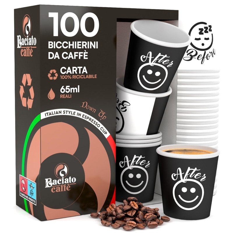 Pack of 100 Paper Cups for Coffee 65ml DownupCUP Eco Friendly Biodegradable Disposable Small Asport Hot Drinks