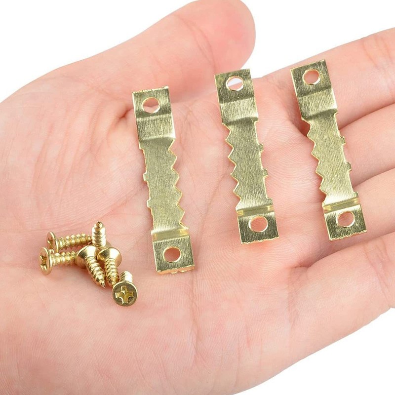 Pack of 100 Picture Hangers, Picture Hangers, Prong Hangers, Sawtooth Picture Frame Hangers, Double Hole with Screws, for Picture Frame Decoration (Gold)