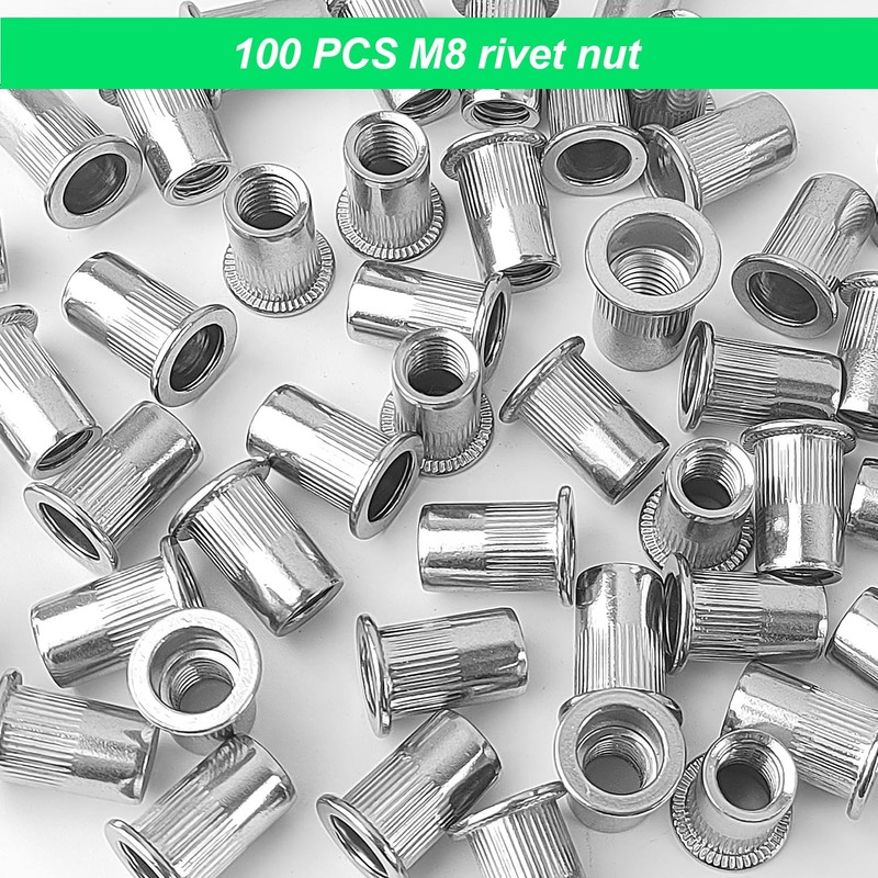 - Size and quantity: provide 100 pieces threaded rivets M8 stainless steel in the M8 specification, each size is 14.5 x 18 mm and the diameter is accurate to 10 mm.