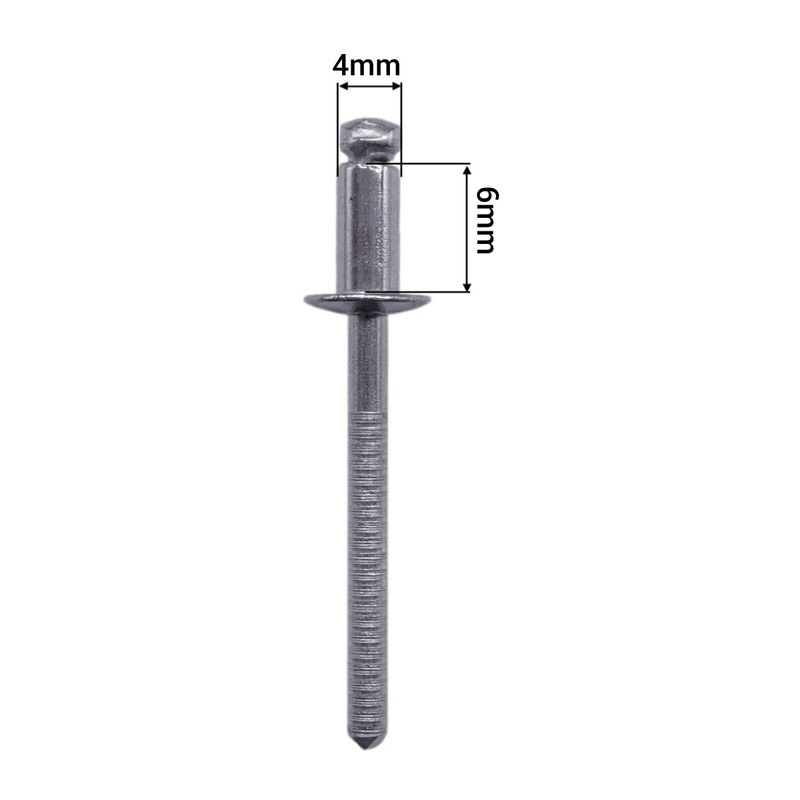 - ✔️ Packaging: pack of 100 blind rivets, size: 4.0 x 6 mm, grooved mandrel DIN 7337 standard