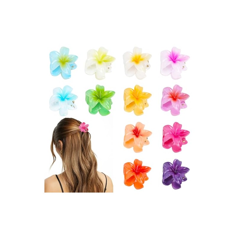 Pack of 12 Flower Hair Clips, Flower Hair Clips, Hawaiian Flower Hair Clips, 4 cm Large Plumeria Flower Claw, Thin, Thick, Curly Hair for Women, Non-Slip Hibiscus Hair Clips, Hair Accessory