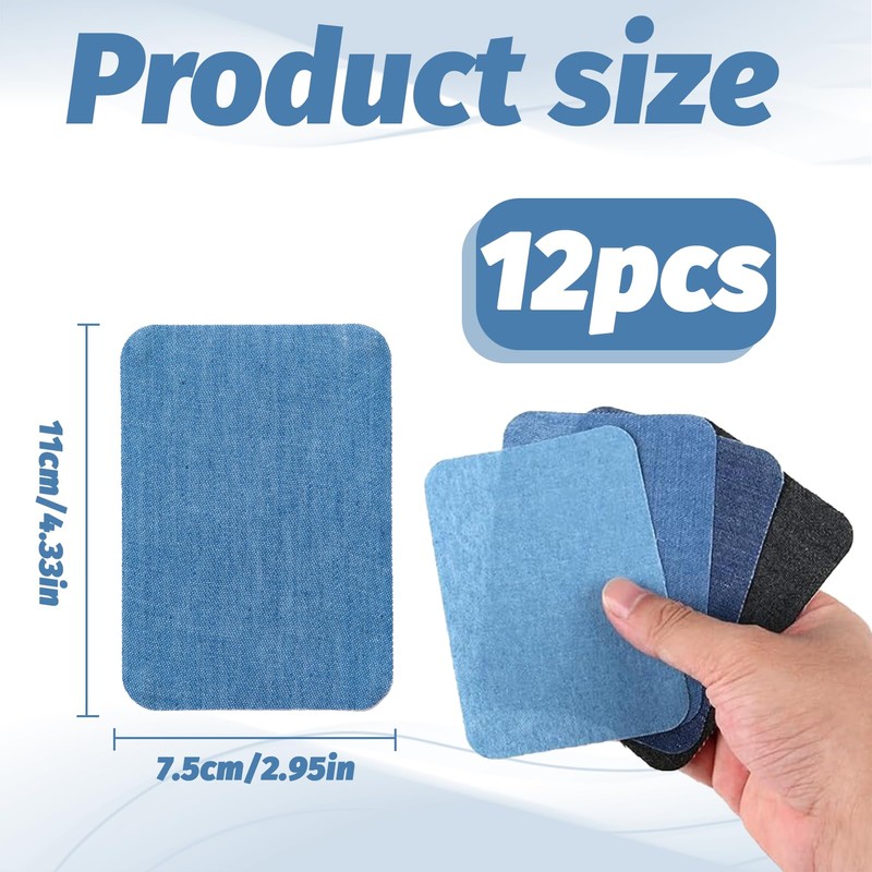 - Package Content: This pack contains 12 iron-on patches. These patches are made in Europe from high-quality materials. The different shades of blue fit perfectly with your denim clothing.