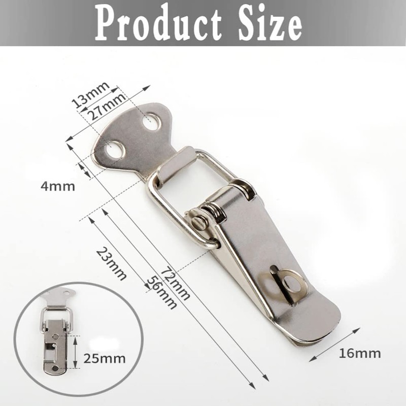 - Package includes: a total of 12 stainless steel tension clasps. Total size 72 x 23 mm, mounting hole diameter: approx. 4 mm. A sufficient quantity to meet your different needs. (Does not include screws).