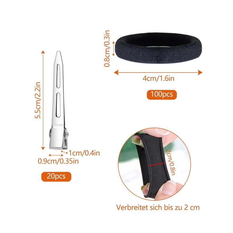 - Hair rubber: 100 black dyed hair spray, ponytail clip diameter 4 cm, thickness 8 mm, maximum stretchy length up to 23 cm, suitable for all thick, thin and curly hair.