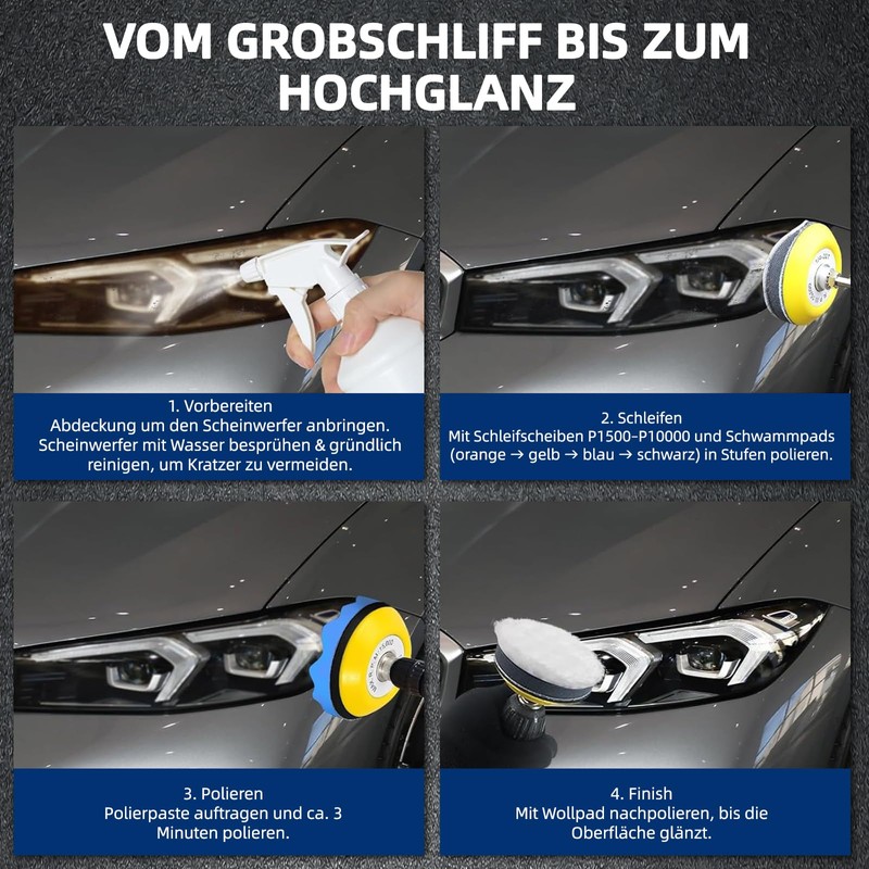 - Versatile: whether for the preparation of car headlights, polishing wood, metal, glass or paint - this set is your reliable helper for cleaning, care and finishing. Also great for home decoration and precise detail work in the home or workshop.