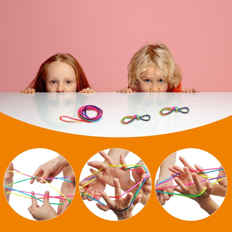 - Value pack: The package contains 14 pieces thread game finger game, each rainbow rope is individually packed in opp packaging, rubber twist girls training flexibility when knitting different shapes through individual or paired finger ropes. Finger twist thread game design and create more than 40 types of graphics, such as feet, crabs, rabbits, ladders, parachutes, cups, Eiffel Tower, stars, balloons.