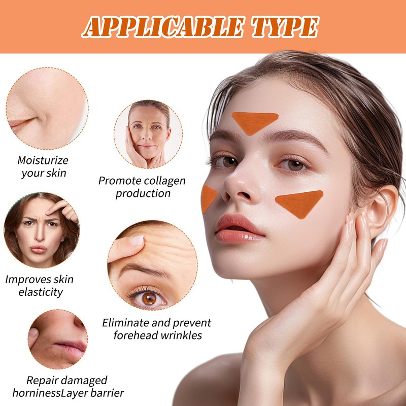 - Unique triangular design: this design not only fits easily to wrinkle-prone areas such as the forehead and corners of the eyes, but also ensures that the forehead wrinkle patch does not shift so easily during use. Thanks to the triangular design, wrinkles plaster face areas where wrinkles concentrate can better cover and thus achieve a good care effect.