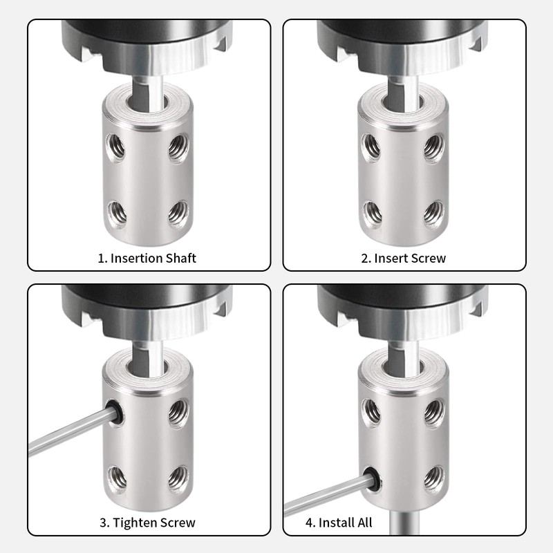 - Packing List:2 Pcs Rigid Set Screw Shaft Couplings,1 Pcs M4 L Hex Wrench,8 Pcs M4 Set Screws