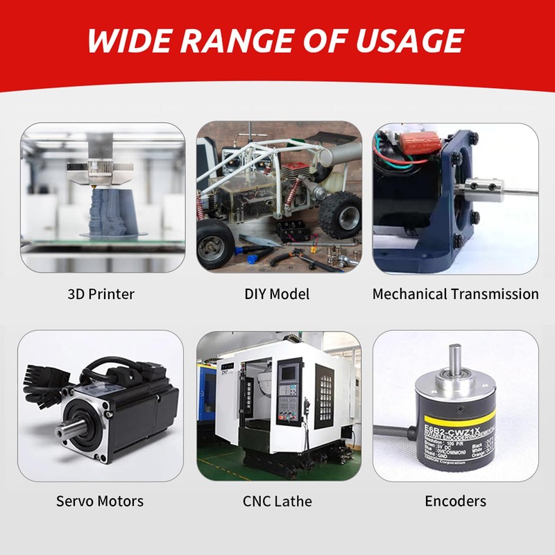 - Wide range of applications: rigid couplings are suitable for 3D printers, robots, motor accessories, DIY models, CNC machines, stepper motors and more mechanical drive industries