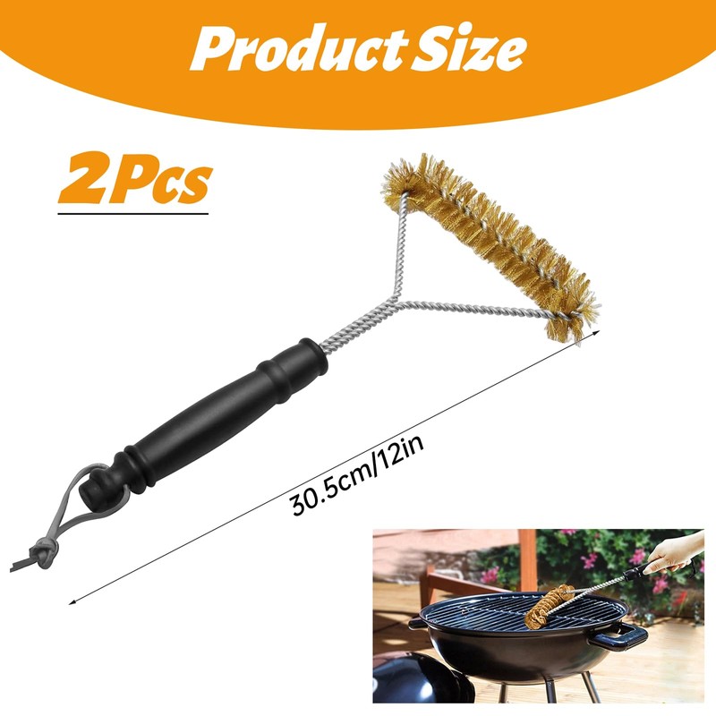 - High Quality Material The grill brush for cast iron grate is made of brass and stainless steel, which are durable, rust-proof and wear-resistant, and the tight copper wires are firmly embedded into the triangular frame by rotation, and the bristles are durable and not easy to fall off.
