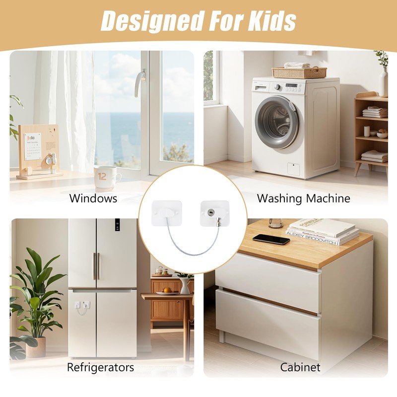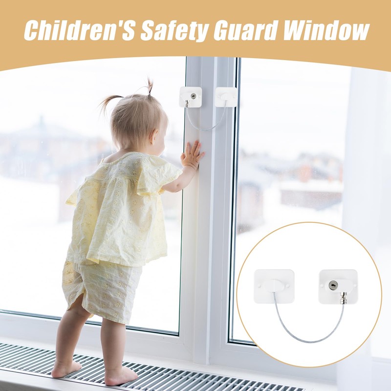 - SAFE HOME FOR KIDS You will get 2 pieces child safety locks for windows, equipped with sturdy 18cm steel cable and individually lockable lock. These window restrictors prevent children or pets from opening windows or doors unintentionally, thus reliably protecting against falls or other hazards - ideal for homes with toddlers or animals.