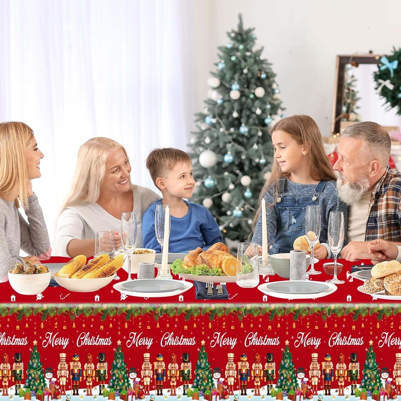 Pack of 2 Christmas Tablecloth, Rectangle Christmas Waterproof Tablecloth for Table Decorations, 137 x 274 cm, Christmas Nutcracker Plastic Tablecloth for Christmas, Holiday, Winter Party Accessories