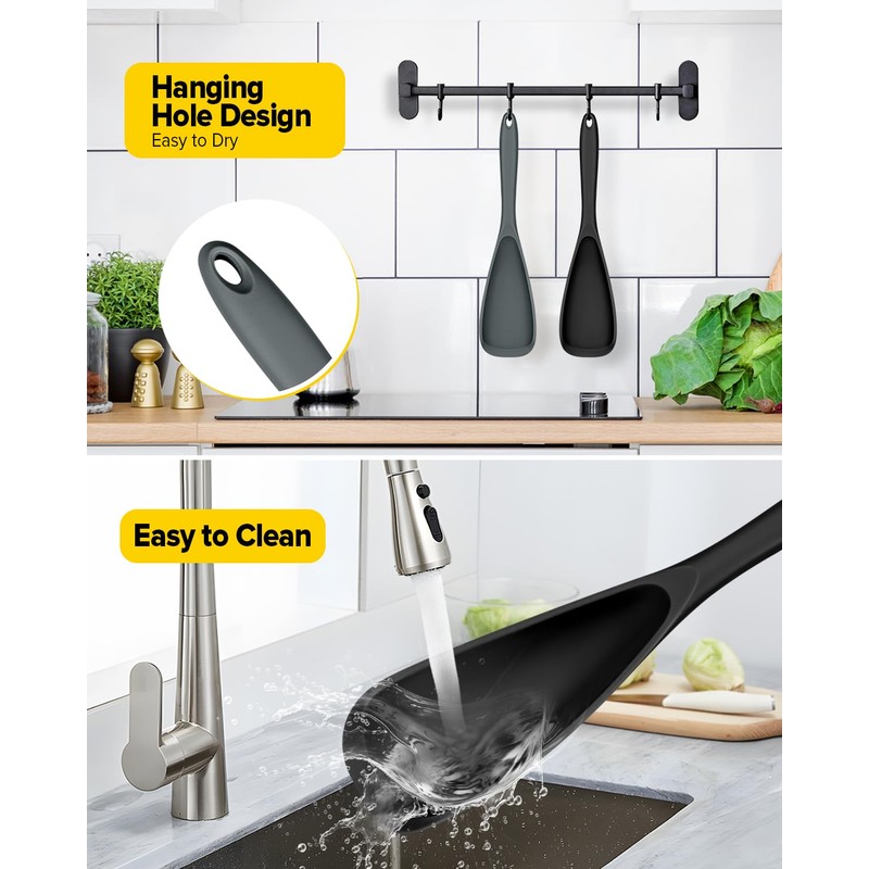 Pack of 2 Cooking Spoons for Non Stick Cookware, Multifunction Spatula Spoon BPA-Free, One-Piece Design, Suitable for Scooping, Scraping, Serving and Mixing(Black-Gray)