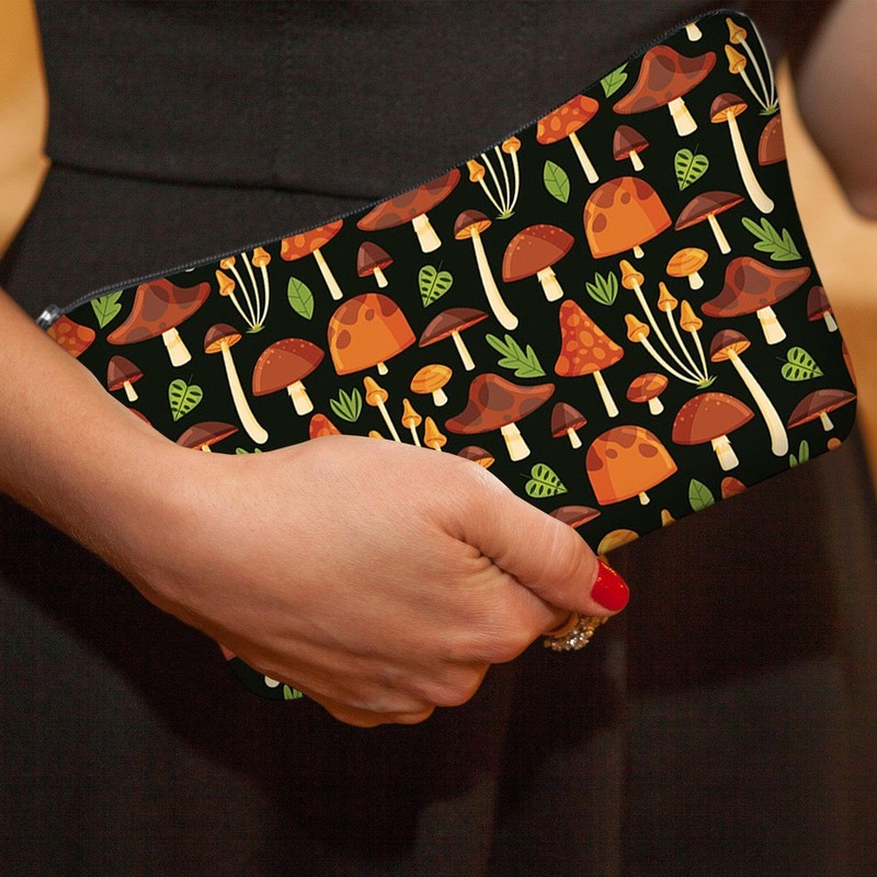 Pack of 2 Cosmetic Bag with Mushroom Pattern, Cute Cosmetic Bag, Portable Toiletry Bag, Travel Cosmetic Bag, Fashionable Storage Bag
