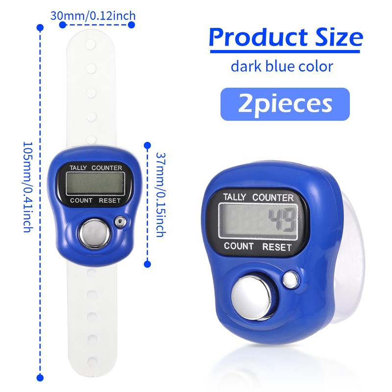 Pack of 2 Digital Finger Counter, Electronic Finger Counter, Row Counter, Mini Coloured Hand Counter, Clicker, Row Counter, Mini Hand Counter for Counting Indoor and Outdoor Activities (Navy Blue)