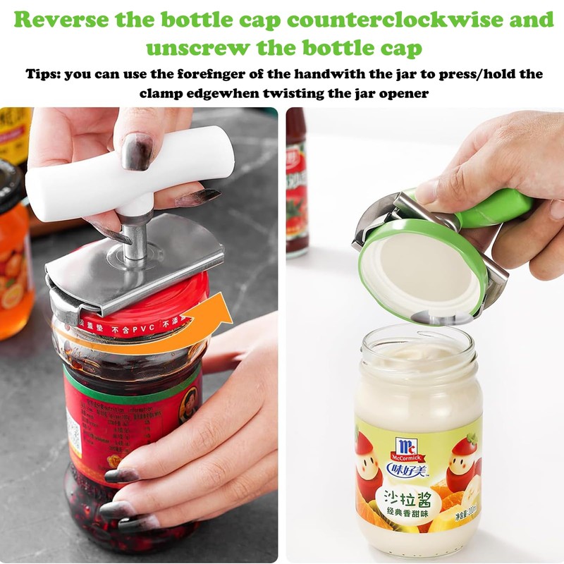 Pack of 2 Effortless Arthritis Jar Opener, Lid Opener for Screw Jars, Can Openers, Seniors, Stainless Steel Can Opener, Suitable for Families and Outdoor Picnics (Green, White)
