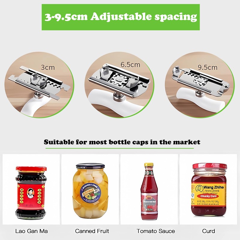 *Adjustable jar opener is specially designed for glass cans, metal bottle caps, beer bottles and beverage bottles of different sizes. With a tool in your hand, the whole family can enjoy it worry-free.
