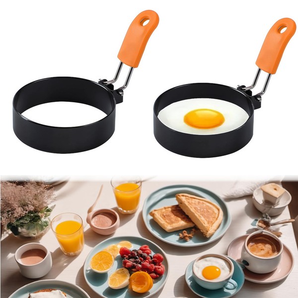 Pack of 2 Fried Egg Moulds, Fried Egg Moulds for the Pan, Stainless Steel Pancake Mould, Egg Mould for Pan, Fried Egg Shape Ring, Egg Shaper, Fried Egg, Poached Egg Mould for Pancakes (Orange)