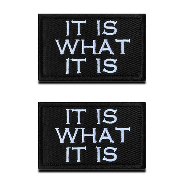 Pack of 2 Funny Biker Patches, It Is What It Is, Embroidered Patch with Hook and Loop Bands, Patches Compatible with Velcro, Military, Morale, Tactical Emblem, 8 x 5 cm