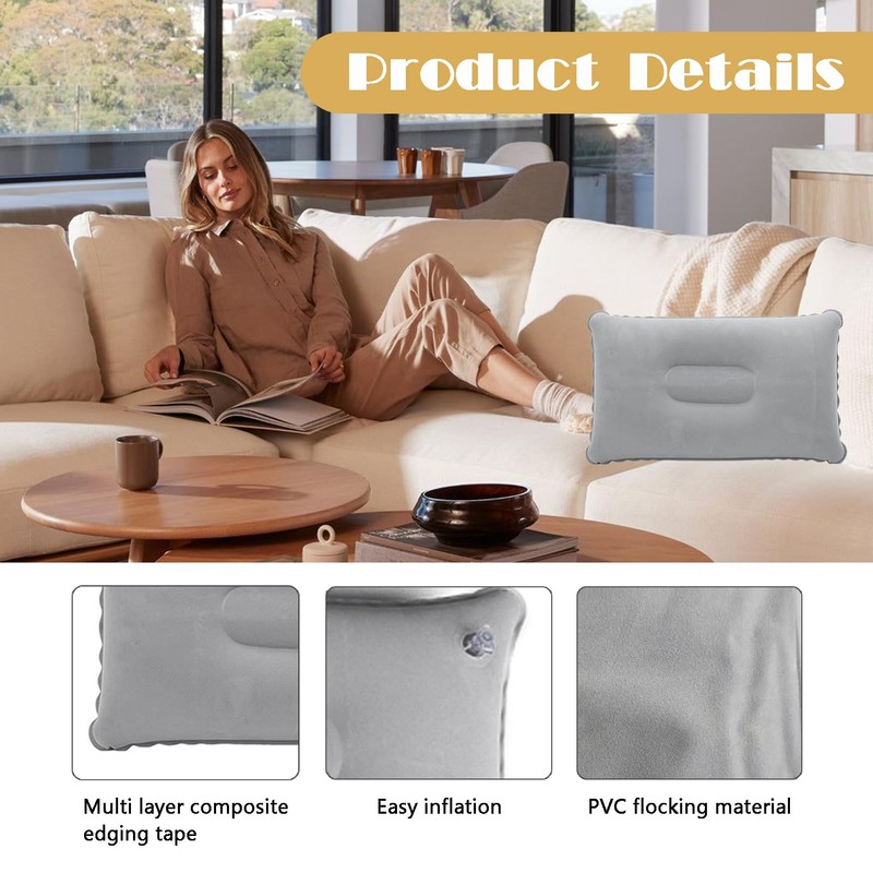 VERSATILE USE Whether you're on the beach, camping or on long flights, this inflatable pillow provides optimal comfort and support. It is the perfect companion for travel, outdoor adventures or simply relaxing.