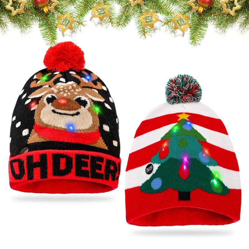 - Cute Christmas motifs: these 2 Christmas hat with LED are striped Christmas trees and white spotted elk, when you wear it, you will resemble a Christmas elf from the fairy tale world, bringing infinite joy and surprises to the people around you, amplifying the whole Christmas spirit