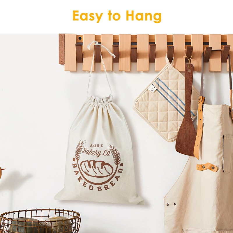 • DRAWSTRING DESIGN The cotton drawstring closure of the cotton bag locks in moisture and keeps dust out while allowing easy access. Thanks to the clever design, the bread bag can be easily hung up and stored away to save space - perfect for small kitchens and busy baking routines.