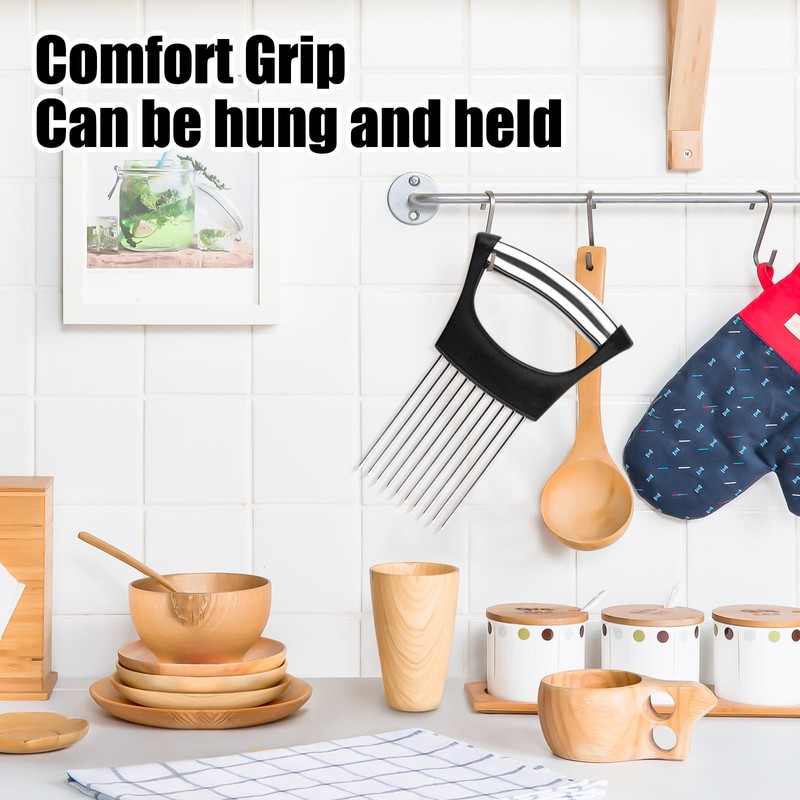 Pack of 2 Onion Cutter Holder, Vegetable Cutter Cutting Tools with 10 Prongs, Meat Slicer Meat Tenderizer Needle, Practical Kitchen Gadgets Safety Cooking Tools