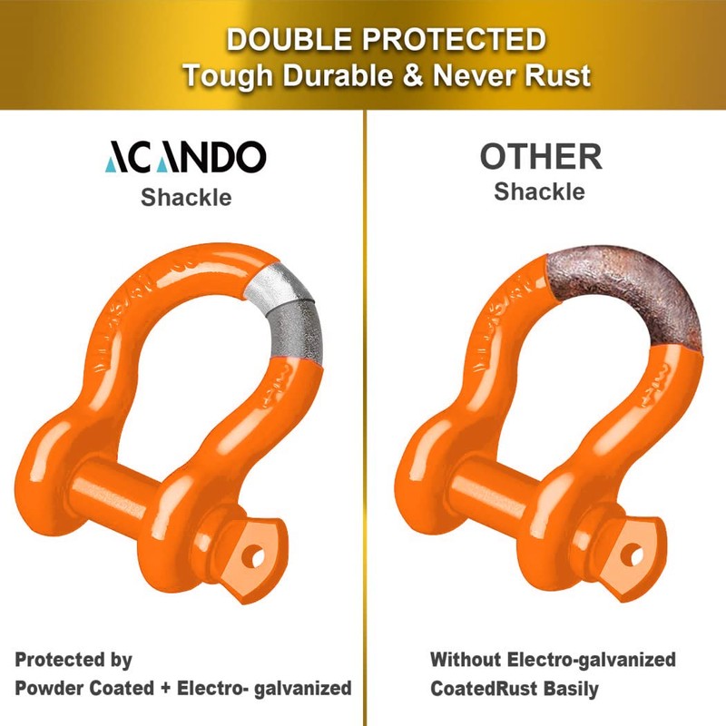 ACANDO offered Bow shackle set giving you the superior capabilities when use the steel shackle for towing, hosting, pulling. Don't leave for the outdoors without a set of rugged off-road shackle.