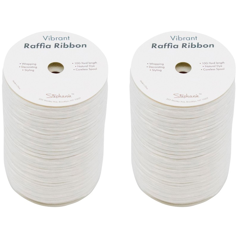 - Pack of 2: Each ribbon spool contains 100 yards of high-quality Raffia ribbon, made from synthetic fibers. The ribbon is conveniently sized at ¼" width, but it can be untwisted and pulled apart to expand up to 1-1/4" width.