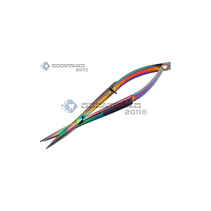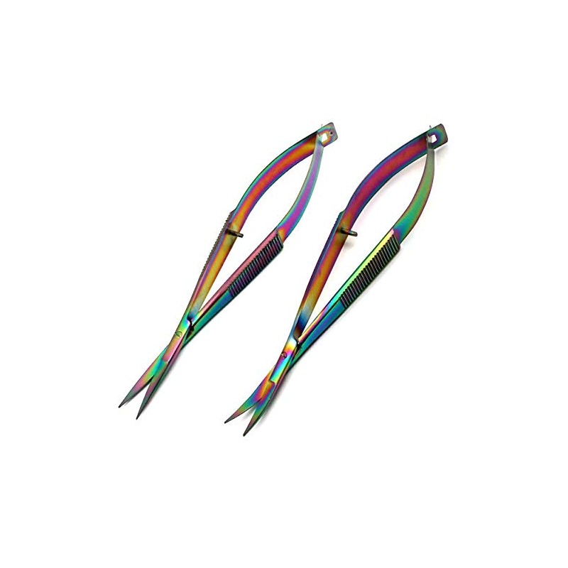 - Lot of 2 Pcs Multi Color Rainbow Castroviejo Scissors 4.5" Straight & Curved Stitch Cutting Embroidery Spring Action Extra Sharp Set