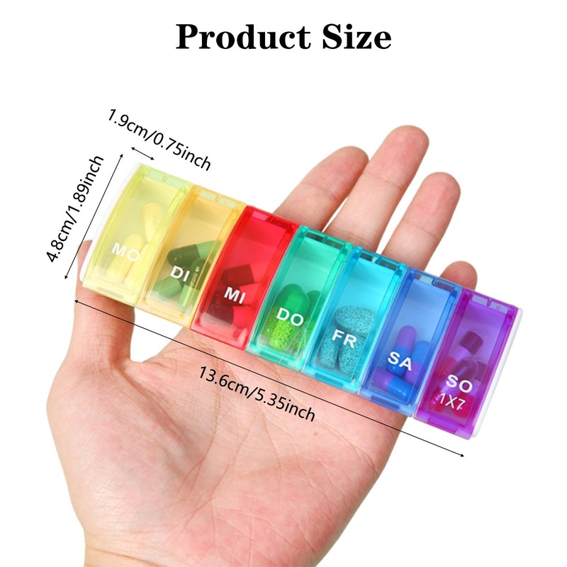 - 【Coloured Division】Seven separate compartments for clear storage of your daily medication. Medication is easy to find thanks to the colour, so you don't have to worry about forgotten or wrong medications.
