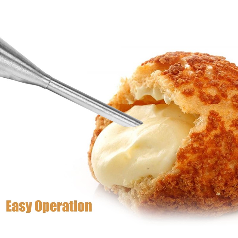 - Contents: set of 2 nozzles for filling all kinds of desserts: cupcakes, muffins, profiteroles, rolls. Matched with the coupler and the piping bag, it is a good help.