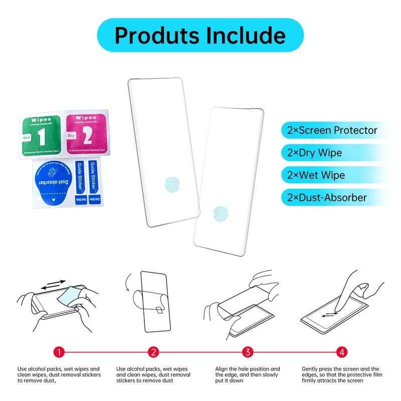 - High sensitivity: the thickness of only 0.33 mm and the perfect fit ensure that the touch is not affected in any way and that fingerprints under the screen can be unlocked even when wearing a protective device. Please re-enter your fingerprint after applying the adhesive film