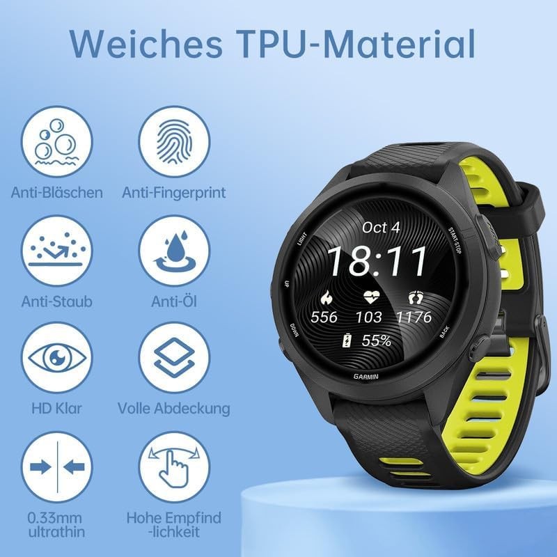 - Compatible with Garmin Forerunner 265S: Compatible with Garmin Forerunner 265S. This screen protector is made of tempered glass for Garmin Forerunner 265S and provides protection for the outer surface without compromising usability, and can be easily removed.