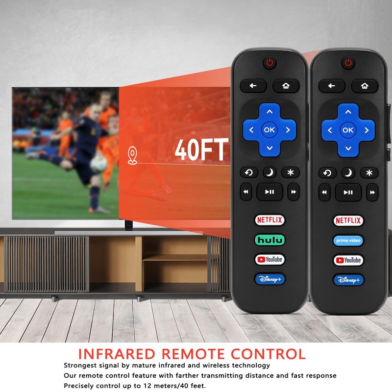 - Pack of 2&Two Versions:There are two version of the remotes in the package. One’s Shortcut buttons are Netflix/hulu/YouTube/Disnep/, the others’ are Netflix/prime/YouTube/Disnep. You can use two of them at the same time, which means you have 5 shortcuts to the channels.