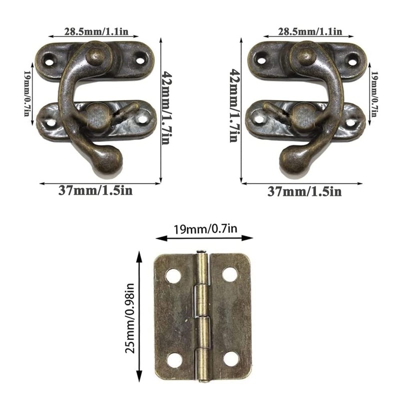 - Package includes: the perfect set contains 10 antique horn locks with right hook, 10 antique horn locks with left hook and 40 antique bronze hinges with matching screws. You can not only repair the antique boxes at home, but also make a very beautiful box yourself.