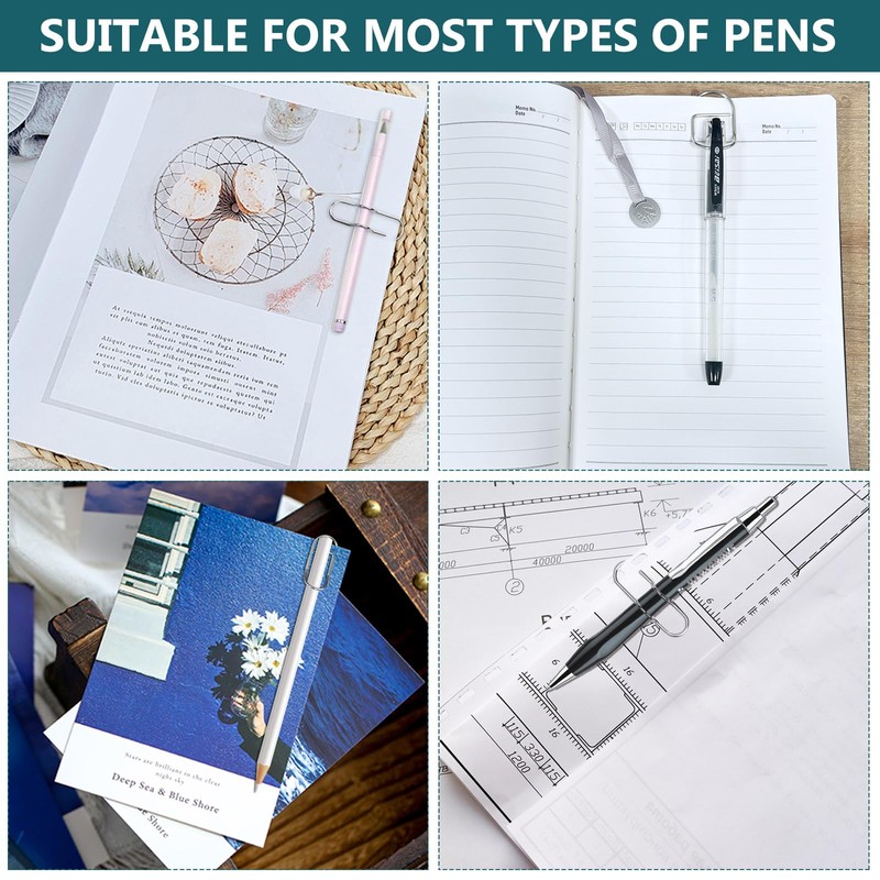 - 4.【Three styles】: the paper clip holder pen clips holds pens firmly while stapling, so that they are not lost on the go and free your hands. It is available in three sizes, so you can choose the right size depending on the paper size and pen thickness.