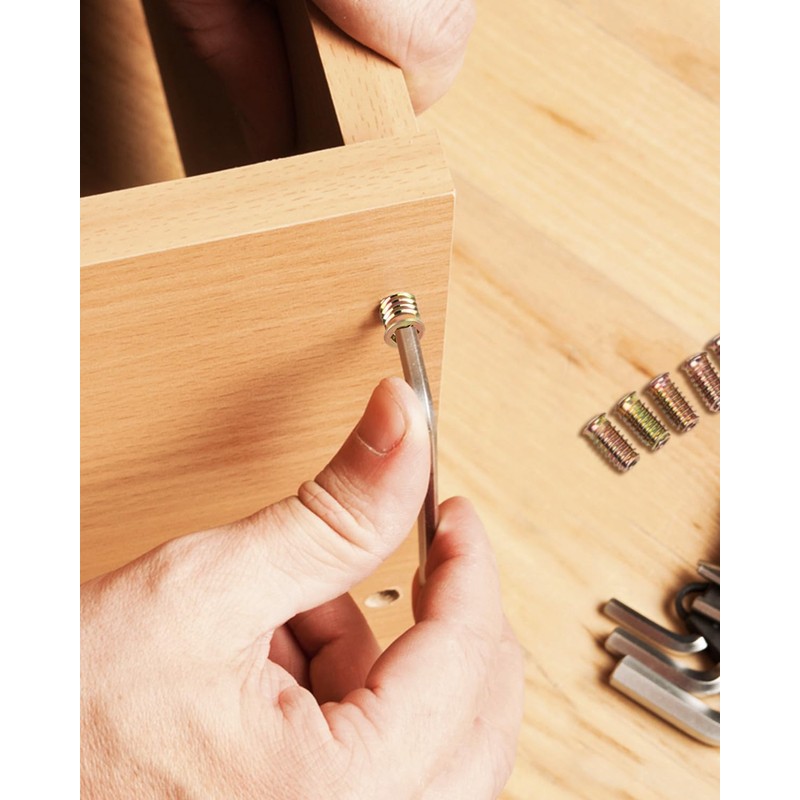 - Installation: threaded sleeves is easy to screw in, just drill a hole of the appropriate size, use a hex key to install and tighten, thread inserts play a predefined role.