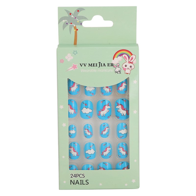 Pack of 24 Removable False Nails for Children, Cartoon Pattern, Full Coverage, Artificial False Nails (01)
