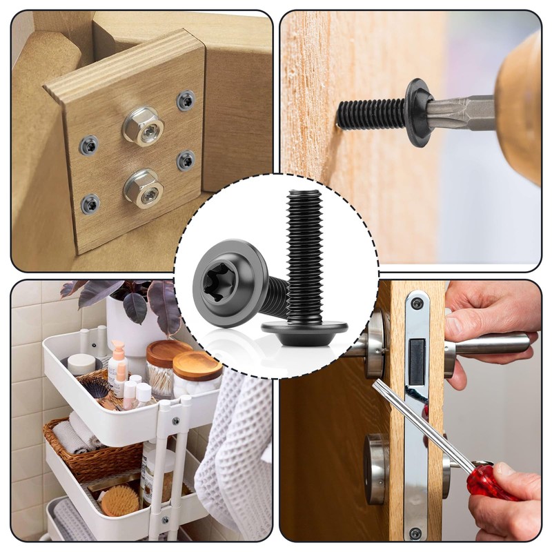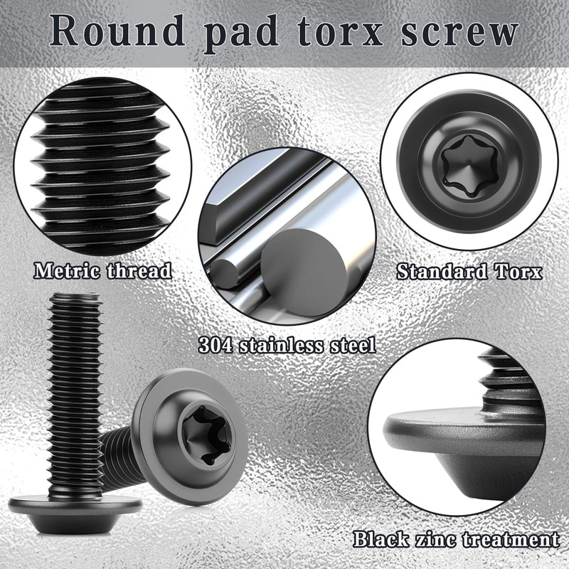 - 【Easy to use】: The flat head screws M6 plum blossom groove design allows precise force application, increases the contact surface with the workpiece and ensures safe and powerful tightening when screwing into the screws. The integrated flat head screw structure eliminates the need for conventional sealing installation steps. Threaded screws M6 is equipped with a special T30 Torx key, which facilitates the installation process.