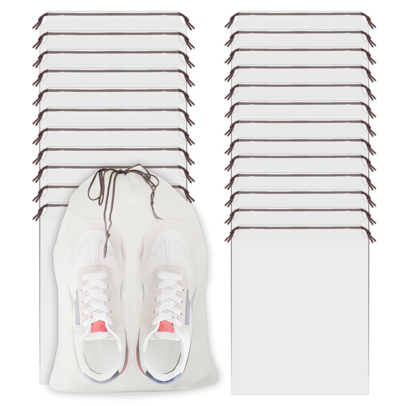 Pack of 26 Shoe Bags with Drawstring (30 x 40 cm) Transparent Drawstring Bag PE Shoe Bag Waterproof Drawstring Bag Multifunctional Storage Bag Set Shoe Bag for Daily Use and Travel
