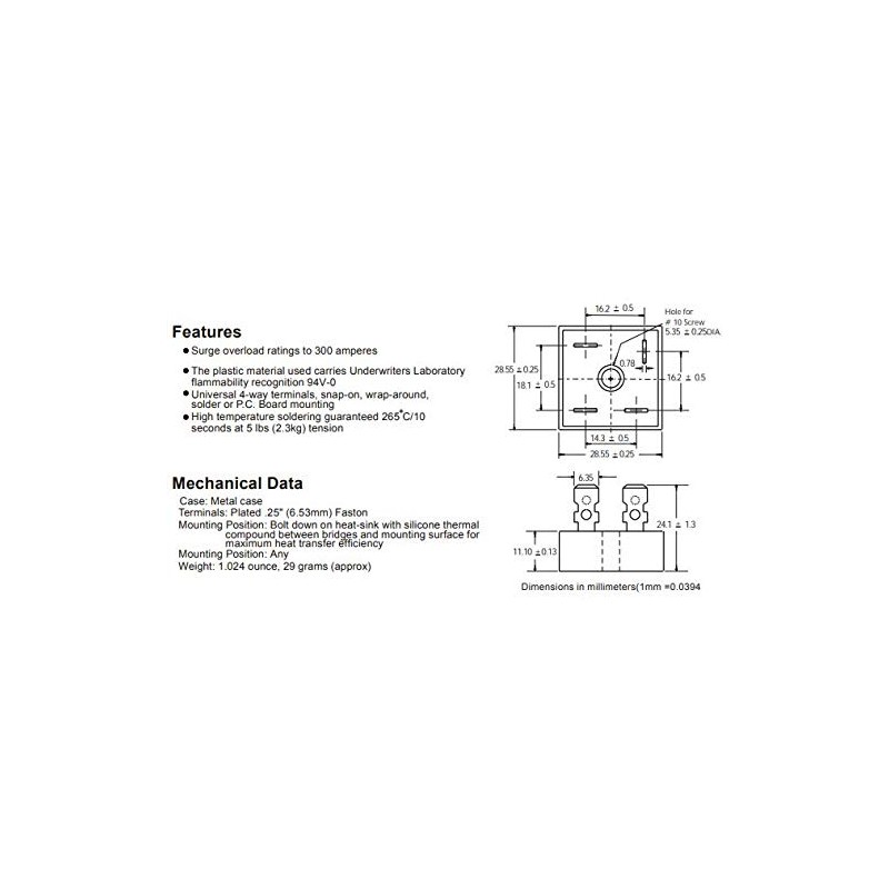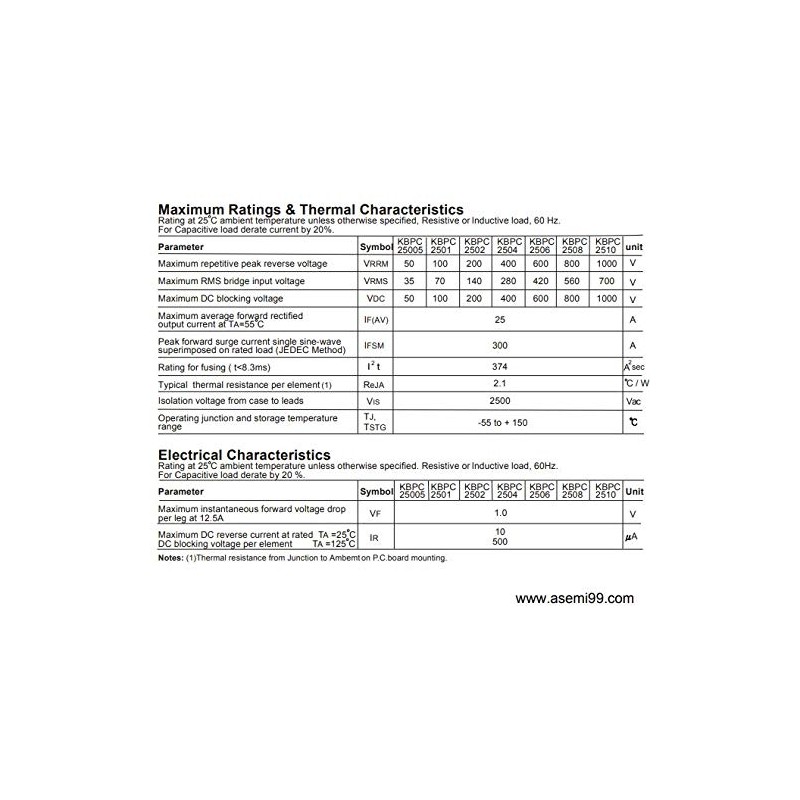 • 【Type No.】: KBPC2508,The electrical parameters of high current and voltage can replace low one in the same series of types, for example: KBPC2510 can replace KBPC2508/06/04.
