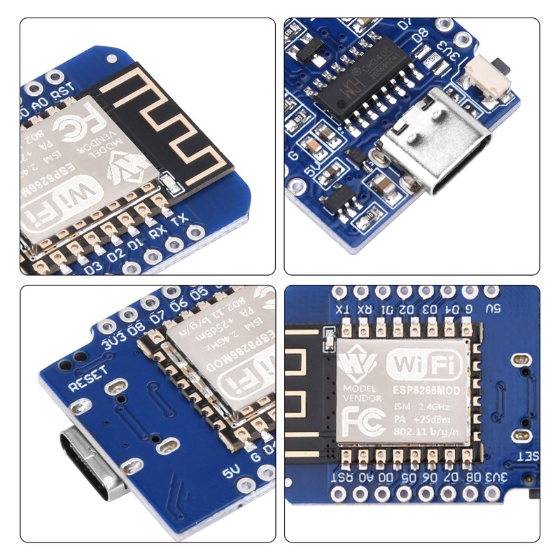 - ESP8266 MINI DEVELOPMENT BOARD The ESP8266 mini board is a mini node MCU WiFi board based on ESP8266-12F with a micro USB C port.