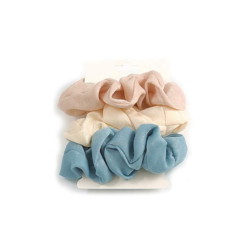 Pack Of 3 Pastel Blue/Cream/Beige Satin Hair Scrunchies - Medium Thickness Hair