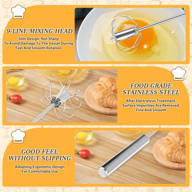 - High-quality stainless steel: the semi-automatic whisk is made of durable, food-safe stainless steel with a highly polished surface to prevent rust. The material is scratch-resistant, there is no risk of it bending or breaking with frequent use, and it is durable