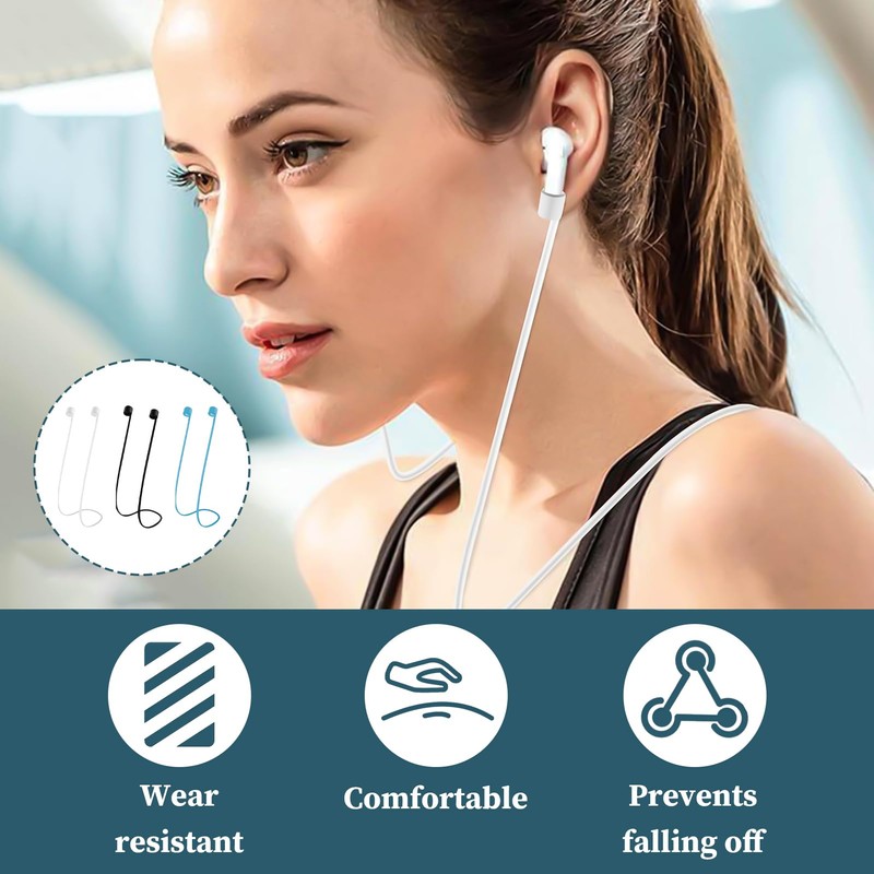 - Discover our AirPods strap specially designed for active users. It is made of flexible, skin-friendly silicone that is not only comfortable to wear, but also keeps your headphones safe. With a length of 70 cm, the strap allows you to wear your headphones comfortably around your neck without fear of loss or fall. It is perfect for all kinds of activities, whether in the office, jogging or travelling.