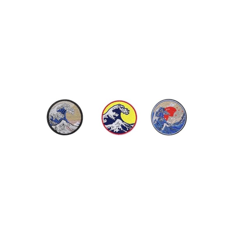 Pack of 3 wave wave patches for iron-on Japanese waves patch clothing patch. Size: approx. 9 and 7 cm decorate your T-shirts, jeans, jackets and more. We recommend sewing on the patches (holds better than iron on).