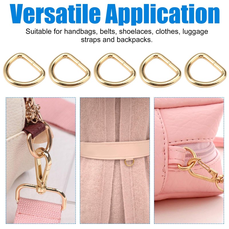 - What you will receive: you will receive 30 pieces of rings for bags, enough quantity to meet your different DIY needs. You can use this gold D ring rivet for bag decoration, linking dog leashes, matching shoelaces, DIY crafts and so on.