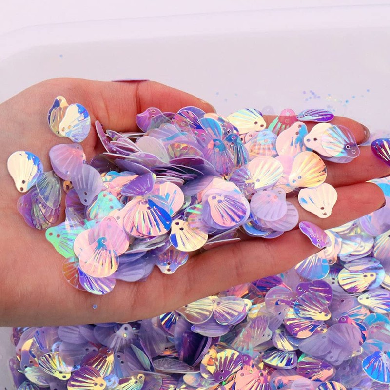 - The shell sequins are made of PVC material. There are different shiny colours and vibrant shapes available.