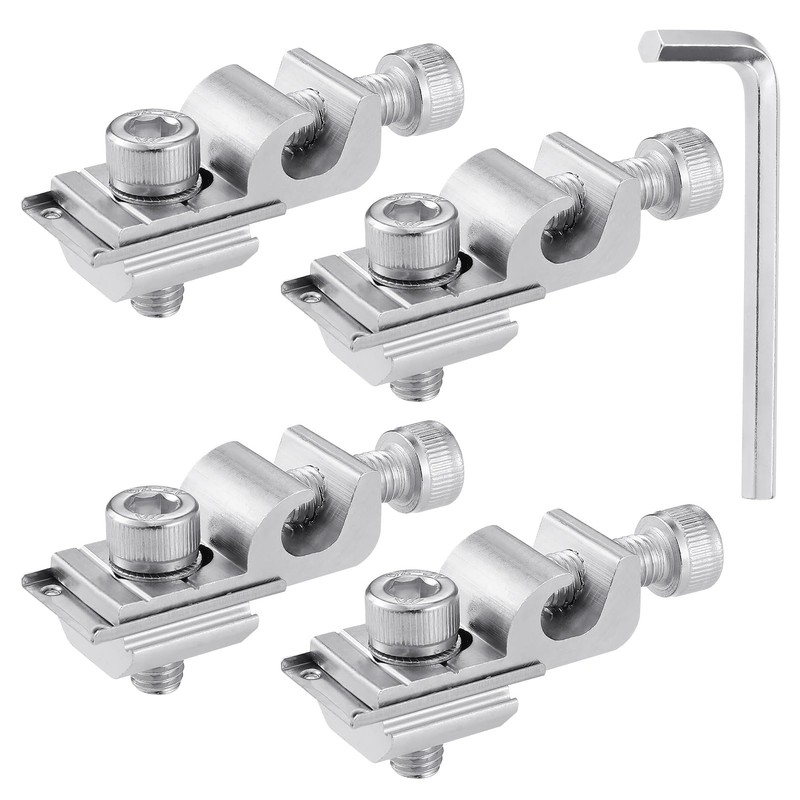 Pack of 4 Earth Clamp PV Module Aluminium Solar Panel Grounding Clips, Solar Module Holder with 1 Wrench, Solar Panel Grounding Clip Potential Compensation for Solar Mounting System Kit